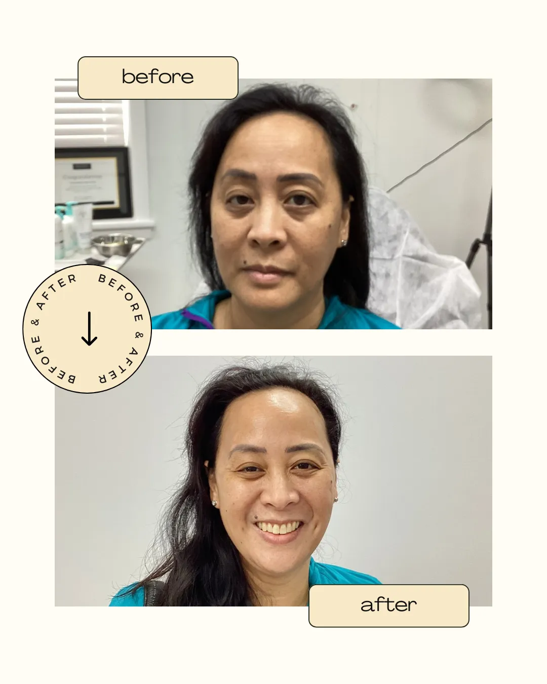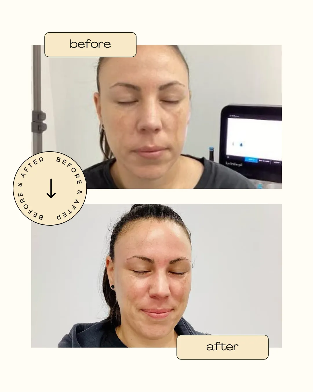 Most patients see results immediately after the treatment, including a more hydrated, radiant, and even-toned complexion. Results can last for several weeks.